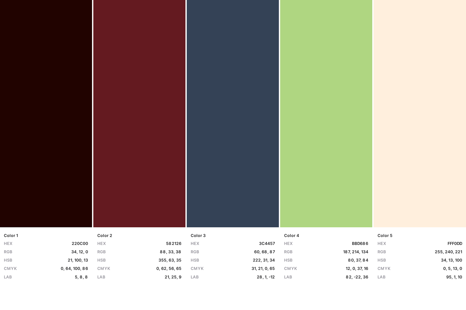 The deep brown and burgundy create a sense of warmth, drama, and narrative richness, grounding the brand in storytelling. The muted blue adds balance and modern precision, while the soft green introduces freshness and originality. A warm off-white provides space and contrast, keeping the identity refined and versatile.